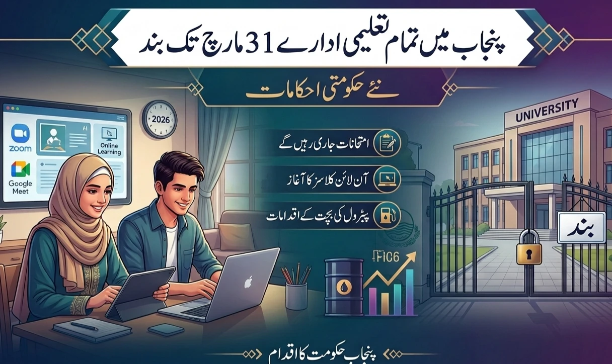 پنجاب میں تمام تعلیمی ادارے 31 مارچ تک بند نئے حکومتی احکامات