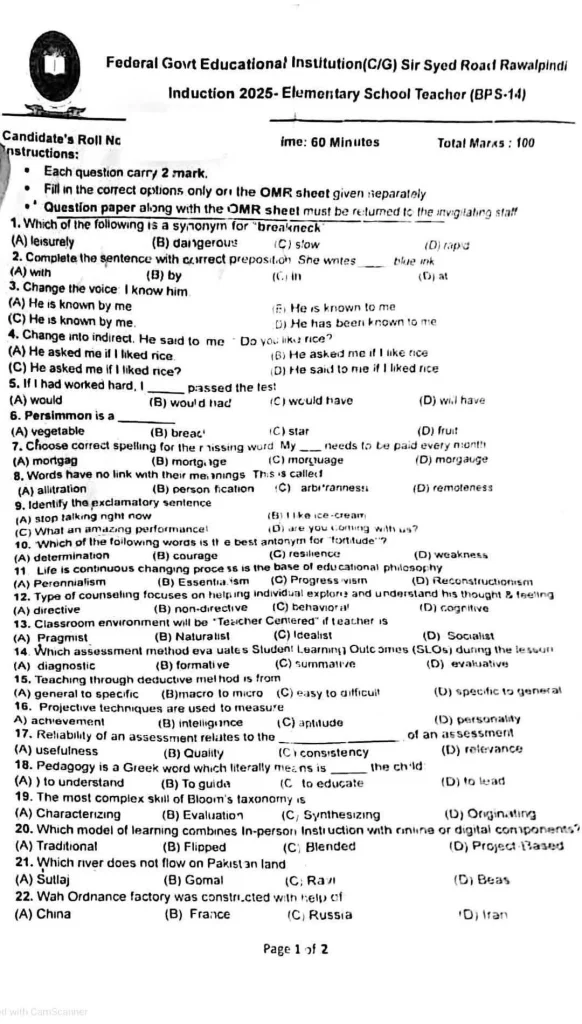 Disclaimer: This article is based on the 2025 induction paper for informational purposes. Always check the official FGEI portal for the latest recruitment policies and syllabus updates.