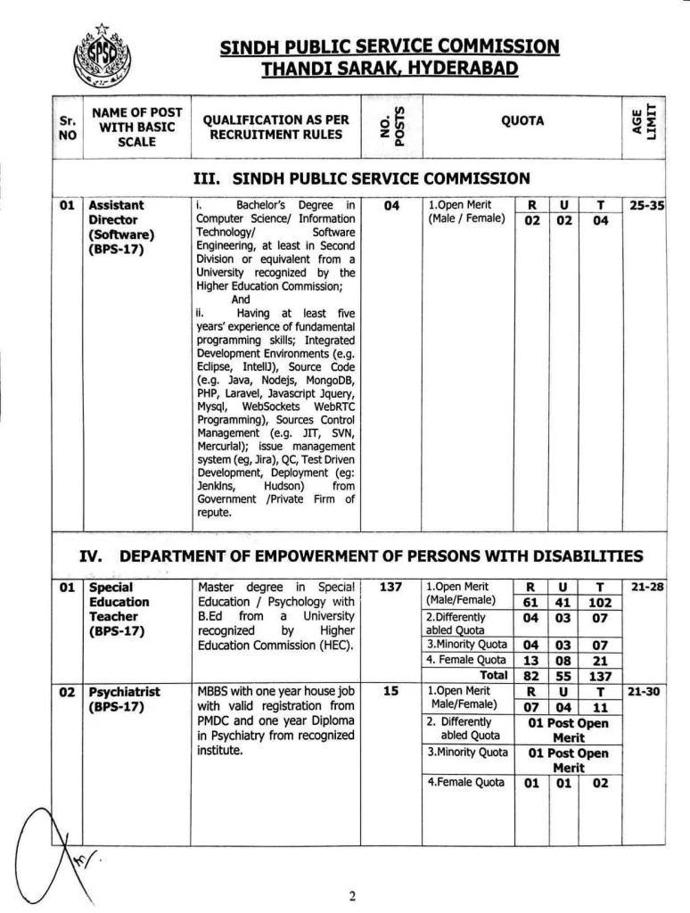 The largest number of vacancies is in the Department of Empowerment of Persons with Disabilities. There are 137 seats for Special Education Teachers (BPS-17). Candidates with a Master’s in Special Education or Psychology and a B.Ed. are highly encouraged to apply.
