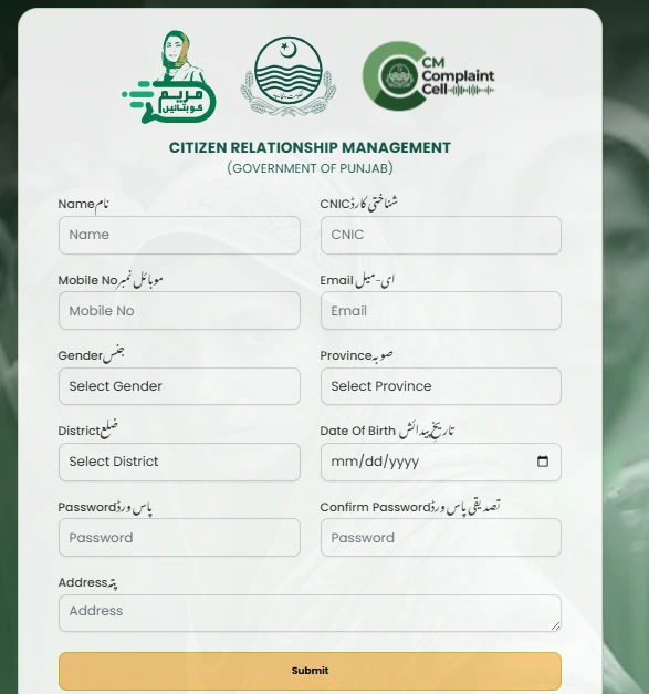 • Chief Minister Punjab’s Complaint Center: Select this to report issues related to government departments (Police, Health, Education, etc.).