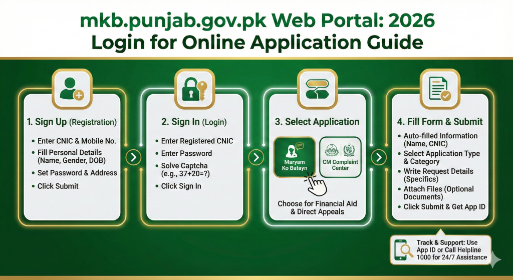 The mkb.punjab.gov.pk portal is a digital initiative by the Government of Punjab designed to bridge the gap between the public and the Chief Minister’s office. Whether you need immediate financial assistance through “Emergency Financial Aid” or want to report a grievance, this article provides a step-by-step guide for sign up , login and application process.