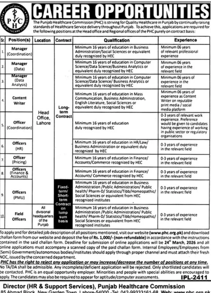 The Punjab Healthcare Commission (PHC) is looking for talented professionals to join its team. As a key regulatory body, the PHC works to improve medical standards across the province. This year, they have announced several positions at their Lahore headquarters and various regional offices.